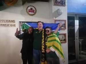 “The Boks made their point”, quipped Des Wood, owner of the Woods. South African flags were waived at the Lifesaving Club and there were hugs all round.