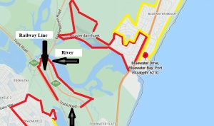 The fact is in Ward 16. neither Swartkops nor Kwazakhele are even remotely connected to Bluewater Bay whilst point vi places an even bigger obstacle in the way of a contiguous district – there is a river in between Bluewater Bay and Swartkops whilst there is a railway line between Swartkops and Kwazakhele, making two physical characteristics that should have been taken into account in the demarcation process.