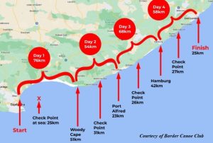 As things stand at present, the 18 doubles teams, two of which are mixed male and female, and 27 single paddlers, including one female, will paddle to Woody Cape on the first leg. The second leg will take them through Kenton-on-Sea to Port Alfred. The third leg is to Hamburg before the final leg that include a call at Kids Beach before paddling to their final destination, Oriental Nahoon.